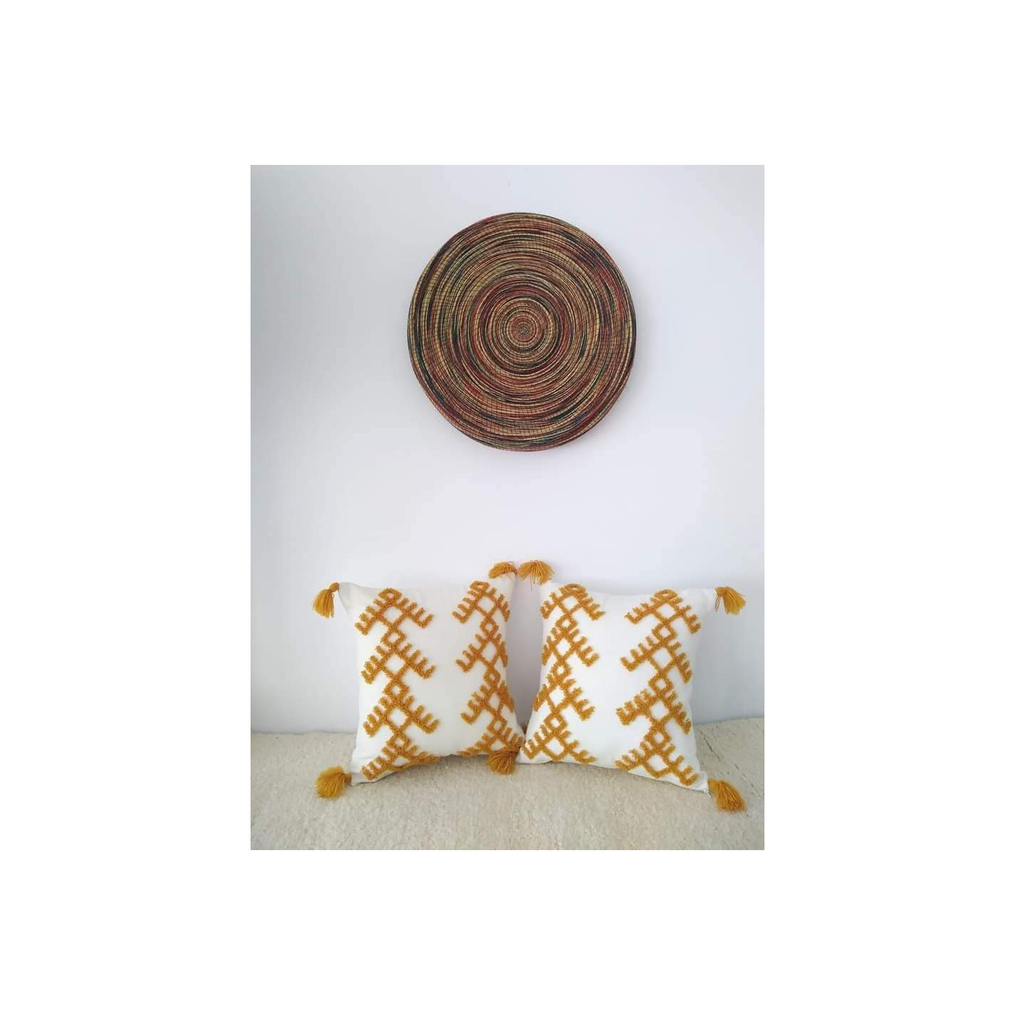 cushion with mustard yellow patterns
