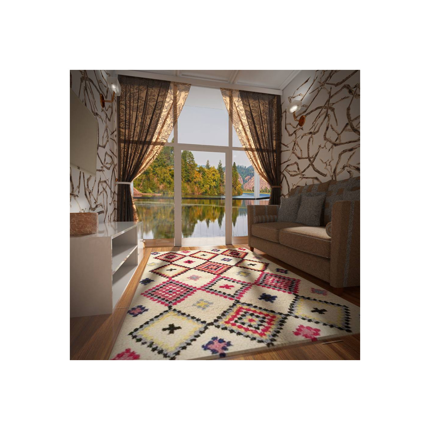 Le tapis BERBERE ANGELA avec des motifs sobres ou colorés, apporte un côté chic à votre décoration. Il convient tout aussi bien avec une décoration vintage, contemporaine, scandinave, industrielle...… Vous pouvez le mettre dans le salon, bureau, chambre à coucher ou bien dans une chambre d’enfant...