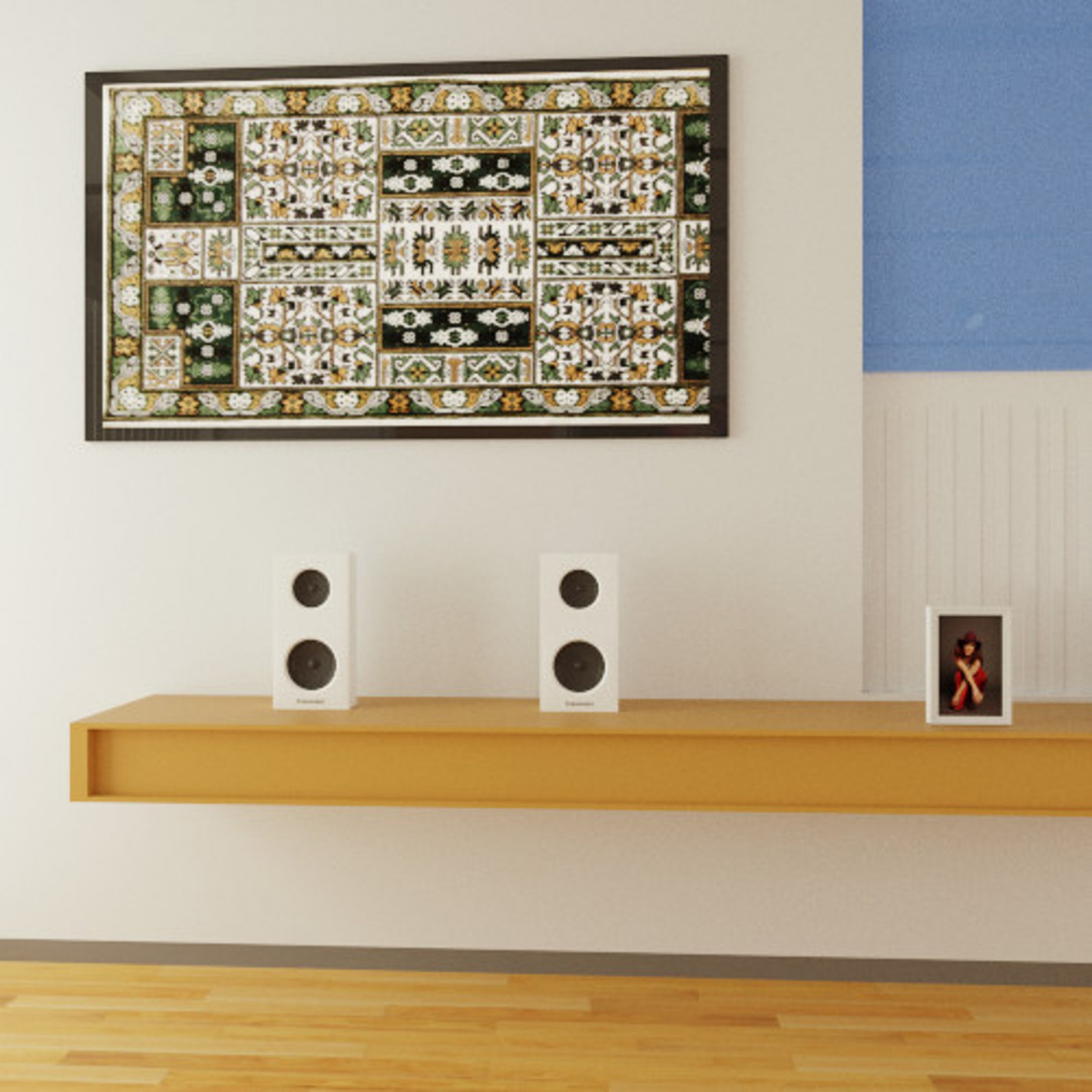 Tableau Décoratif en soie design classique Motifs Bleu 0.98 x 0.54 cm
